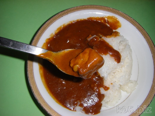 このカレーはスパイスの辛さだけでなくて、うまみもあります。肉も3切れでしたが写真の3枚目のようなものが入ってます。これが結構おいしいです。具らしきものはほかにはありません。