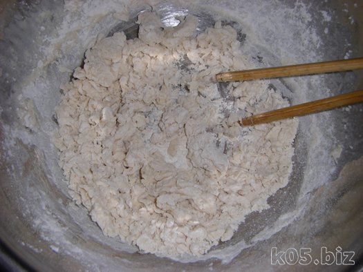 1.ボールに、中力粉、ペーキングパウダ、塩、砂糖を入れる2.水を少し加えて、おはしでかき混ぜる