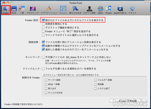 設定ツールには、OnyXまたはTinkerToolがあります。ツールを使う場合は、お好きな方をお使いください。