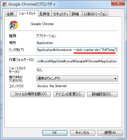 Google Chrome のキャッシュをRAMDISKに設定する方法は