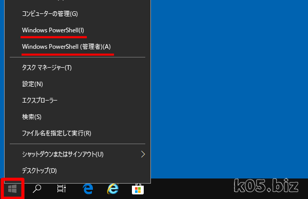 2.Windows PowerShellまたは、Windows PowerShell(管理者)を選択