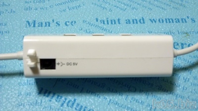この製品を購入したのは、5V端子(写真の2枚目)がついていたからなんですね。動作保証もないもないんですが、ここに5Vをつなげば、セルフパワーでは動作しない機器が動作するのでは?と予想したからです。5V端子の規格は、EIAJ#2みたいでした。PSPとかSL-ZAURUSとかで使われてるやつです。100円ショップでもPSP充電用ケーブルとかで入手できるかと思います。