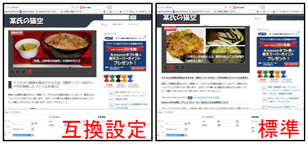 で確認した結果も、互換設定側の表示に近いので、そちらが正しいと思います。