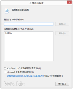 IE11の互換表示設定のところに、調べたいサイトのURLを登録します。