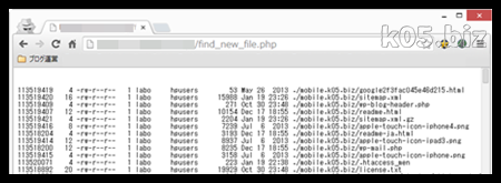 こういうPHPファイルを作成して、レンタルサーバーに設置してから、ブラウザから呼び出すと画像のように、3日以内に更新されたファイル一覧がブラウザ上に表示することができます。■3日以内に更新されたのを詳細で一覧表示で
