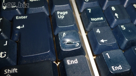 「A」キーが、すり減って?穴があいてしまってるんですね。これがあるので使わなくなったんですが、このキーを「PageDown」キーとすり替えました。そうすると気持ちよく使えるようになりました。