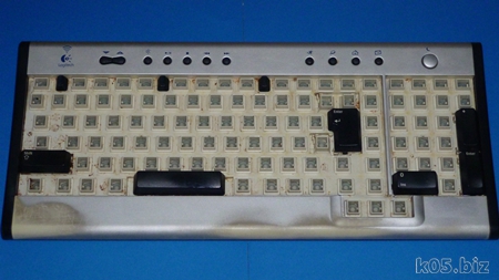 Logitech製のコードレスキーボード「Y-RC26」という奴です。かなり古い製品で購入してから10年ぐらいはたつかと思います。オークションでもたまに見かけるのですが、これ「赤外線」のワイヤレスキーボードなので、そこが一番の問題なので、間違っても買わないほうがよいかと思う。キータッチとか作りとかはかなりイイんですけどね。