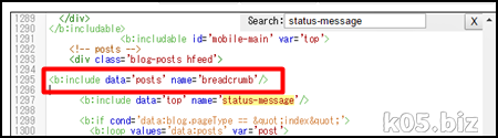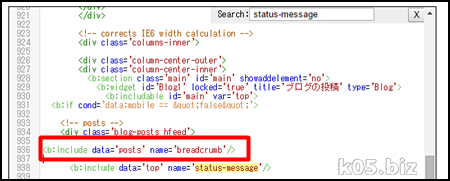 テンプレート->HTML編集で以下のような作業をします。<b:include data='top' name='status-message'/>