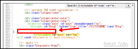 テンプレート->HTML編集で以下のような作業をします。<b:includable id='main' var='top'/>