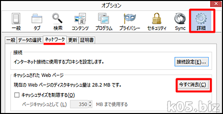 Firefoxの場合は、上記のところでキャッシュをクリアするとOKです。