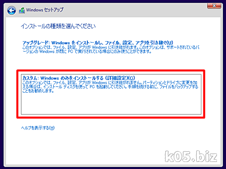 新規にインストールする場合は、「カスタム」を選択すればOkでした。