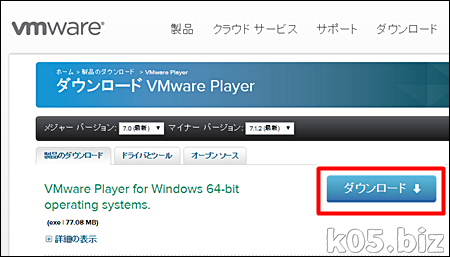 ・ダウンロード VMware Player 7.0今回私は、バージョン6.0で試しました。