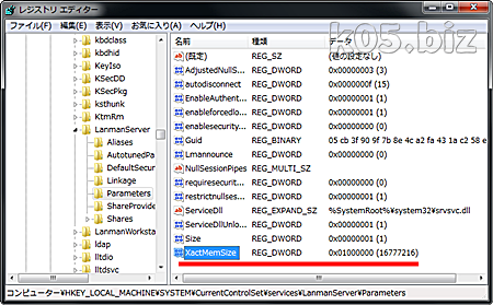 "XactMemSize" という名前の REG_DWORD 値を追加します。