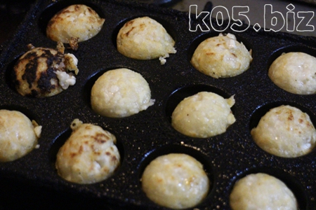 ここに、ソース、青のり、カツオ節、マヨネーズなど、たこ焼きにありがちなものをあっければ、たこ焼き風味になります。