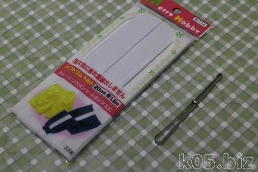 ということで、トレパンにゴムを入れてみることにしました。ゴムは100円ショップで購入しました。幅2㎝でこれよりも太いゴムも売っていました。たぶん2.5㎝?だったと思います。ゴムひもは可能なら太めでないとすぐに伸びてしまうと思います。
