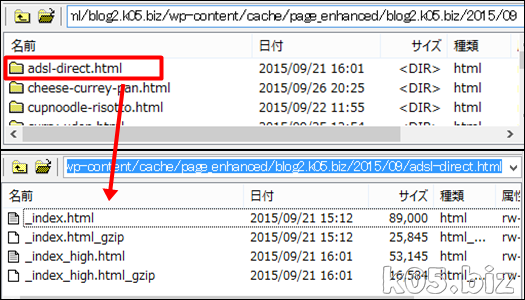 上記フォルダにキャッシュがわかりやすい形で作成されます。URLと同じフォルダが作成されその中に、「_index.html」「_index_high.html」という名前で作成されます。「_high」とつくのがスマホ用です。