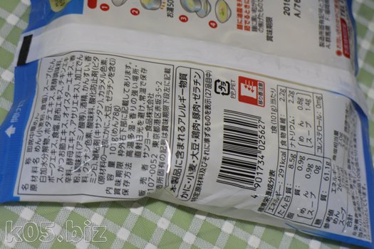 「ノンオイルスープ」「ノンフライ麺」「コレステロール0」とパッケージにかかれているので、味的にはずしたラーメンだと困るなぁということで1袋だけ買ってみました。
