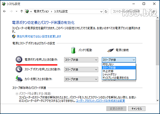 電源ボタンを押したときの動作を「スリープ状態」に設定します。
