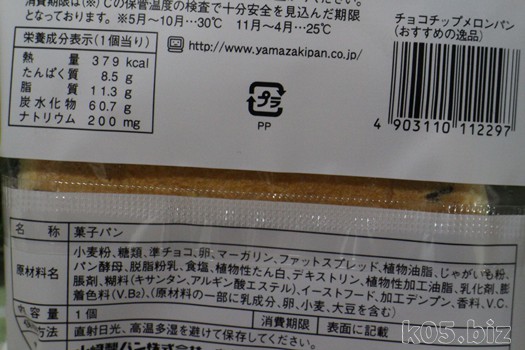 初めて食べたときは、たしか「 大きなチョコチップメロンパン」だった気がするんですが、最近、近所で見かけるのはこれなんですね。カロリーとか違うんでその位置づけがわからないんです。ただ、錯覚でなくてたぶん、「大きなチョコチップメロンパン」のほうがおいしかった気がします。