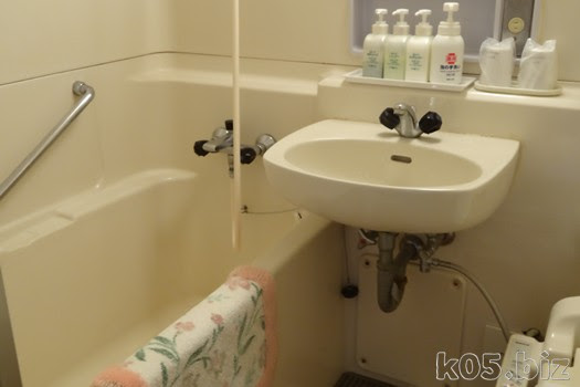 ワンルームマンションやビジネスホテルにありがちな、トイレ一体型のバスルームもついてます。