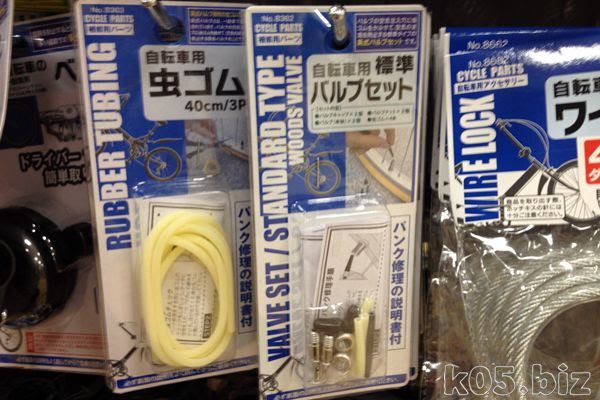 自転車のパンクの修理で頭がいっぱいで、そのほかの修理パーツを見てくるのを忘れました。ダイソーの方は品ぞろえが良くてその手のパーツがこまごまといろいろありました。300円でタイヤのチューブも売ってるというのをネットで見かけたのですが、私が行った店にはありませんでした、チューブごと交換のほうが楽なので300円なら欲しかったんでけどね。