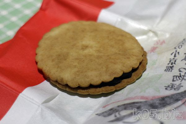 見た目はこんな感じですね。小豆餡が挟まっています。外側はパサパサとしっとりの間ぐらいです。