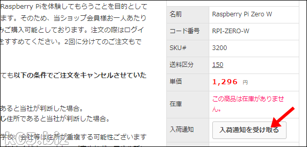 会員登録して「入荷通知を受け取る」を押すと、次回入荷時にメールでお知らせが来ます。今回も前日に来てました。