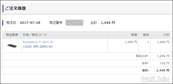 注文すると、メールでも案内が来ますし、またWebでも注文履歴として参照することができます。