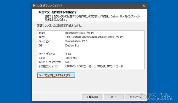 ISOイメージを「2016-12-13-pixel-x86-jessie.iso」を指定して、起動します。