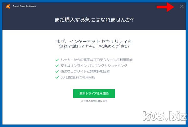この画面でも「x」ボタンで閉じるしかないので、閉じます。
