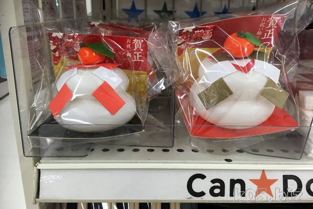 ここ数年、真空パックの鏡餅(右側)を購入してました。これ別に作り物でも良いんじゃないの?と前から思ってたのですが、キャンドゥで写真のようなものを見つけたので購入してみました。ワッツやダイソーにも似たようなものが売ってました。ダイソーは去年も売ってたと思います。