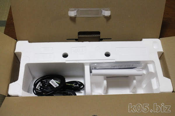 こんな感じです。液晶パネルの液晶画面側は、保護パネル(段ボール+発砲スチロールの板状)でも保護されてました。