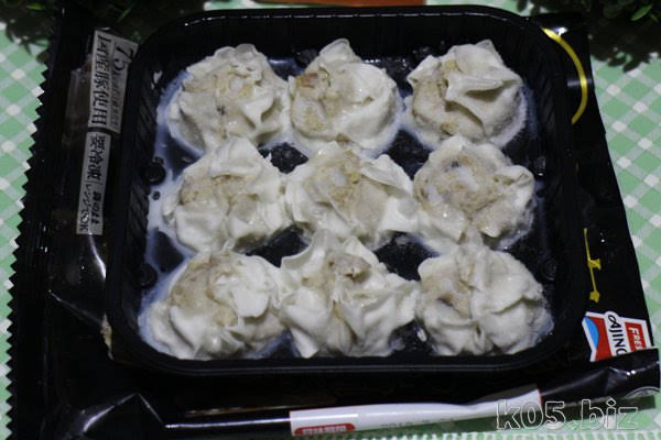 この商品、全部一度に食べる場合は、袋のまま電子レンジにかけれるのですが、撮影のために開封してみました。たぶん、焼売の周りの白っぽいのは「脂」です。