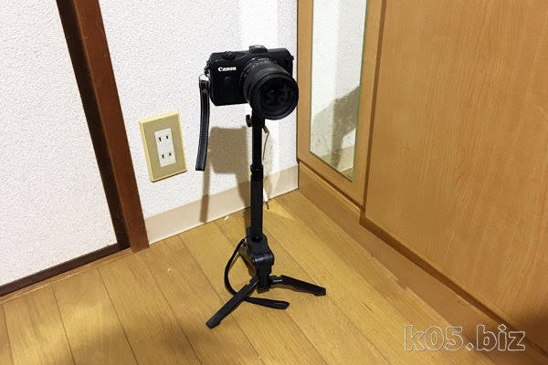 遊びで、EOS M君をつけて見ました。風吹けば倒れて泣くことになるので実用性はほぼないですが・・。自撮り棒は結構しっかりしてるので、一脚代わりに使える感じではあります。