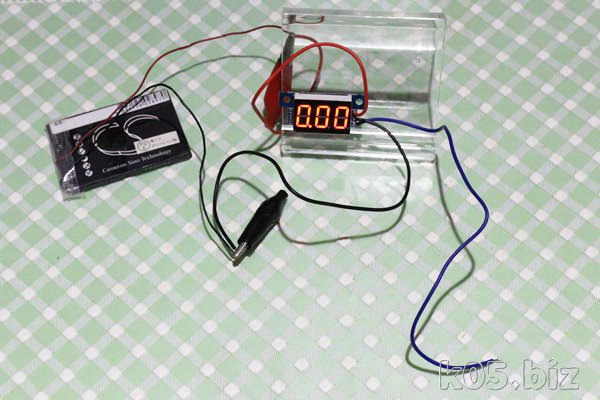 電圧計に電力に3.7Vの電源につなぐと、写真のように表示されました。