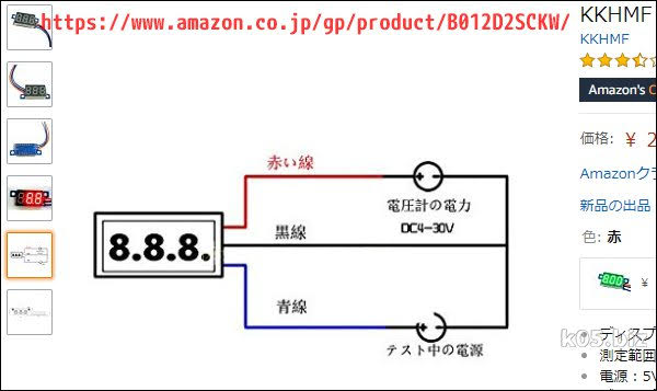 100均で購入した「電池残量チェッカー」のアナログメーターをこのデジタル電圧計に置き換えるために使います。ネットで制作事例がいろいろあって、それをみて作りたくなったのでまずはパーツを買いました。