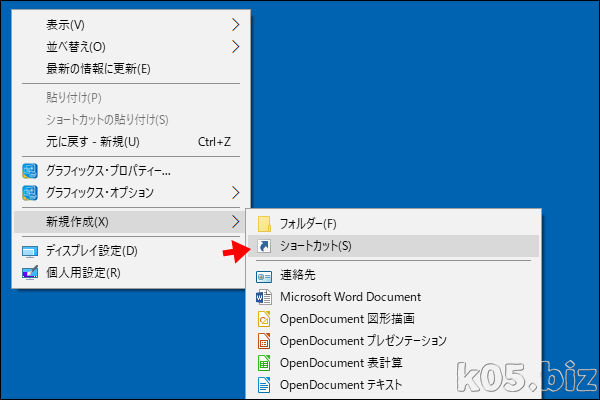 デスクトップで右クリックで、メニューからショットカットを選びます。そうすると作成ウイザードが起動されるので、答えていくだけです。