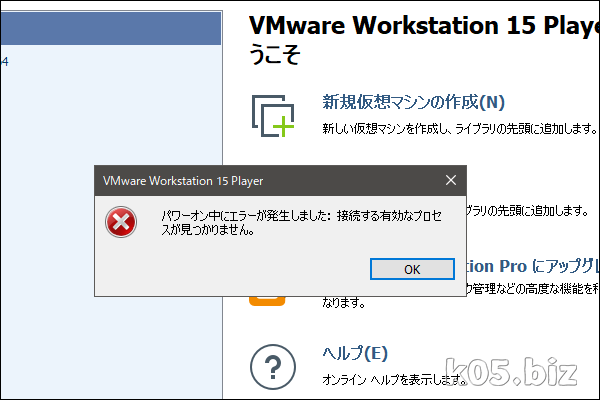 パワーオン中にエラーが発生しました:VMware Playserは、VMware Authorization Serviceの起動に失敗しました。VMware Authorization Serviceを手動で起動してみてください。この問題が続く場合は、VMwareサポートに連絡してください。