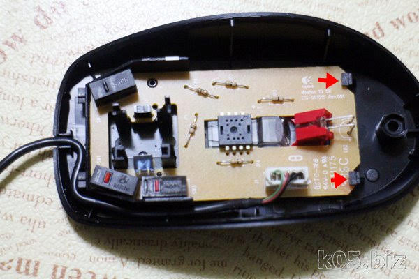 M100rの場合は、矢印の部分にちゃんとはめるようにしないと、マウスカーソルの動きが変になります。その部分だけ気を付けて、組み立てると終了です。