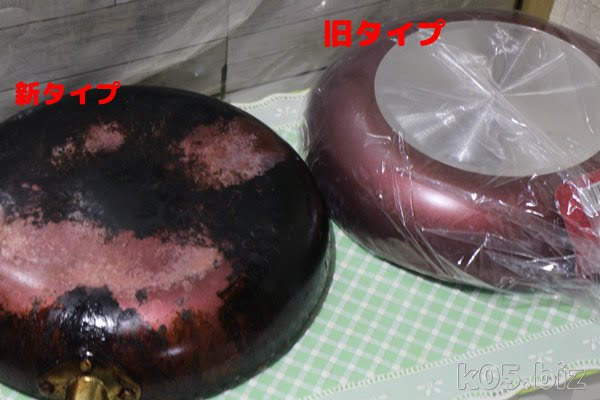 去年あたりから、底面が赤いままというか何も加工されてないバージョンに変わりました。初めは、こんなのあまり影響ないと思ってたのですが・・・。実際使うと、だんだん底面が丸くなっていってゆがんでいく感じなんですよ。あと、なぜかコーディング剥がれも早くなった気が・・。