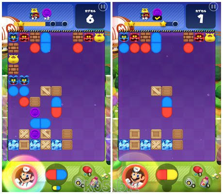 右側のところからも、機会があればカプセルを積みます。同色3個をつんで、上のブロック等を壊せるようにします。この右側の部分を死守しながら、画面の上側のウイルスも消すように頑張ります。