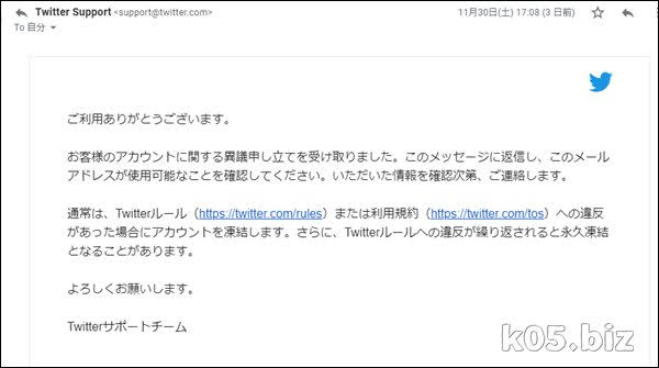 Twitterルールに違反したことでアカウントが凍結になった場合、どのツイートがどのルールに違反しているのかを、メールにて、より具体的にご連絡するようにいたします。なお、メールには異議申立てを行われる際のリンクもご案内しています。 pic.twitter.com/GEmc7iiuKL