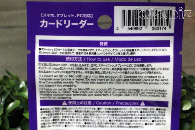 ダイソーで100円(税抜)で購入しました。キャンドウ、ワッツとかも見てみたのですが、なぜかmicroSD/SDカードリーダーが見当たりませんでした。