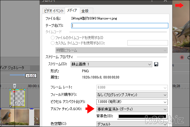 PNG画像ファイル(透過)をビデオトラックに挿入します。しかし、透過の部分が真っ黒なままなんですね。