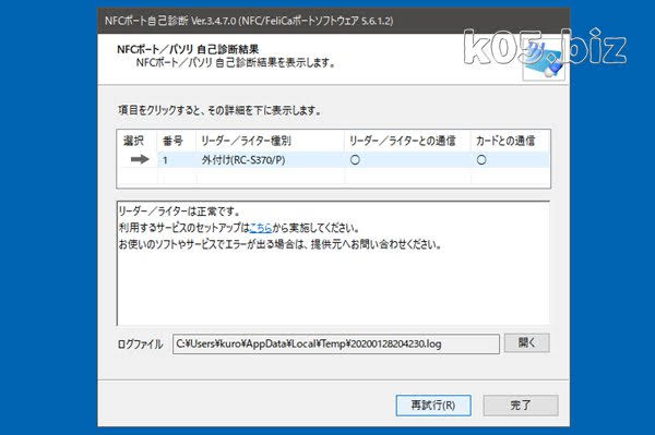 ICカードリーダーによって違うかとは思います。SONYのICカードリーダーでは、NFCポート自己診断というのがあります。