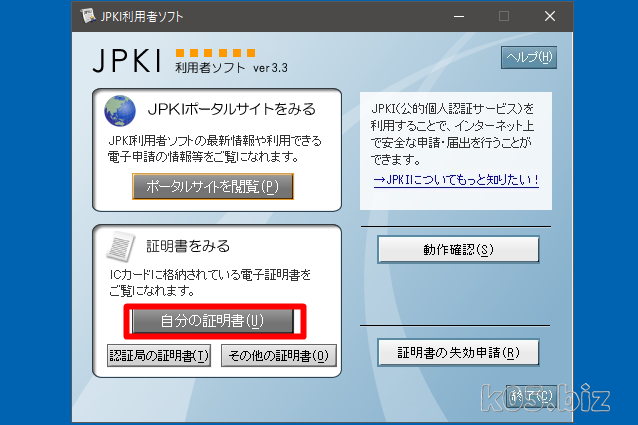 「自分の証明書」クリックすると、カードの中身(の一部)が表示できます。