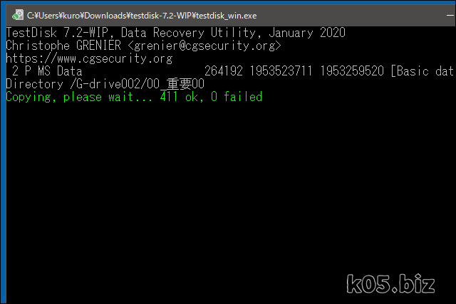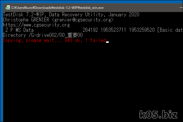 「焦って作業しても、良いことなない」ということを肝にすえて、それでも、何かをしないと落ち着かないので、以前使った「TestDisk」を使ってみることに・・