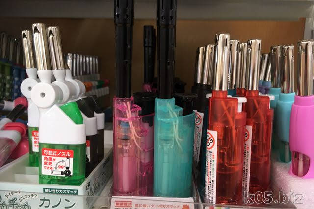 ネットで検索すると、「ガスライター用のガスボンベ」が100均にも売ってるみたい。商品に説明が書かれてるような気がするので、こんど探してみてみようと思います。