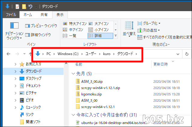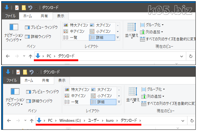 answers.microsoft.comのこの書き込みを見て、もしかすると、ダウンロードフォルダのたどり方が違うと、別扱い?される可能性もあるのかなぁと思って、今回やってみました。