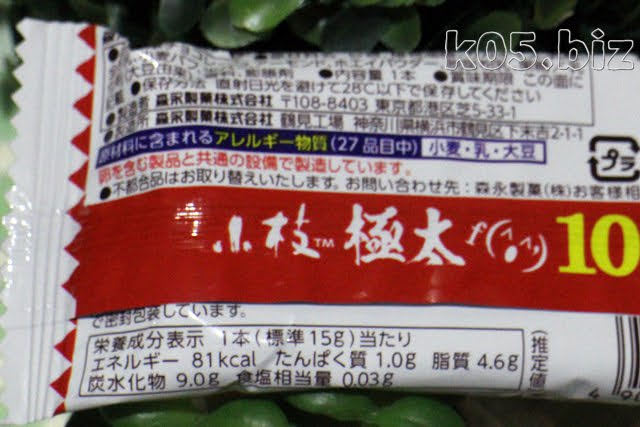 【森永製菓】小枝 極太 を食べてみた 2020/06/30 食べてみた お勧め度:(3.0点) ・50円(税抜) ・見た目が楽しい 味や食感だけでいえば、普通の小枝のほうがおいしいと思います。まあ、見た目楽しいし、食べやすいし、味も悪くないかなぁとは思う。 外観 円形でないの?と思ったけど、Googleの画像検索で調べる限りでは、普通の小枝も円形ではないみたい。そういえば、転がらないように一部平面になってたような気もする。 断面はこんな感じ。 原材料、カロリー カロリー:81kcal 塩分:0.03g スポンサーリンク 関連記事 【日本ハム】狩人風きのこクリームハンバーグを食べてみた【冷蔵】 2019/10/28 「あげいも」を食べてみた【北海道】 2019/08/27 【京都】懐中しるこ 紫の水 を食べてみる【平安殿】 2020/02/16 【有楽製菓】「フルグラ®サンダー」を食べてみた 2018/03/20